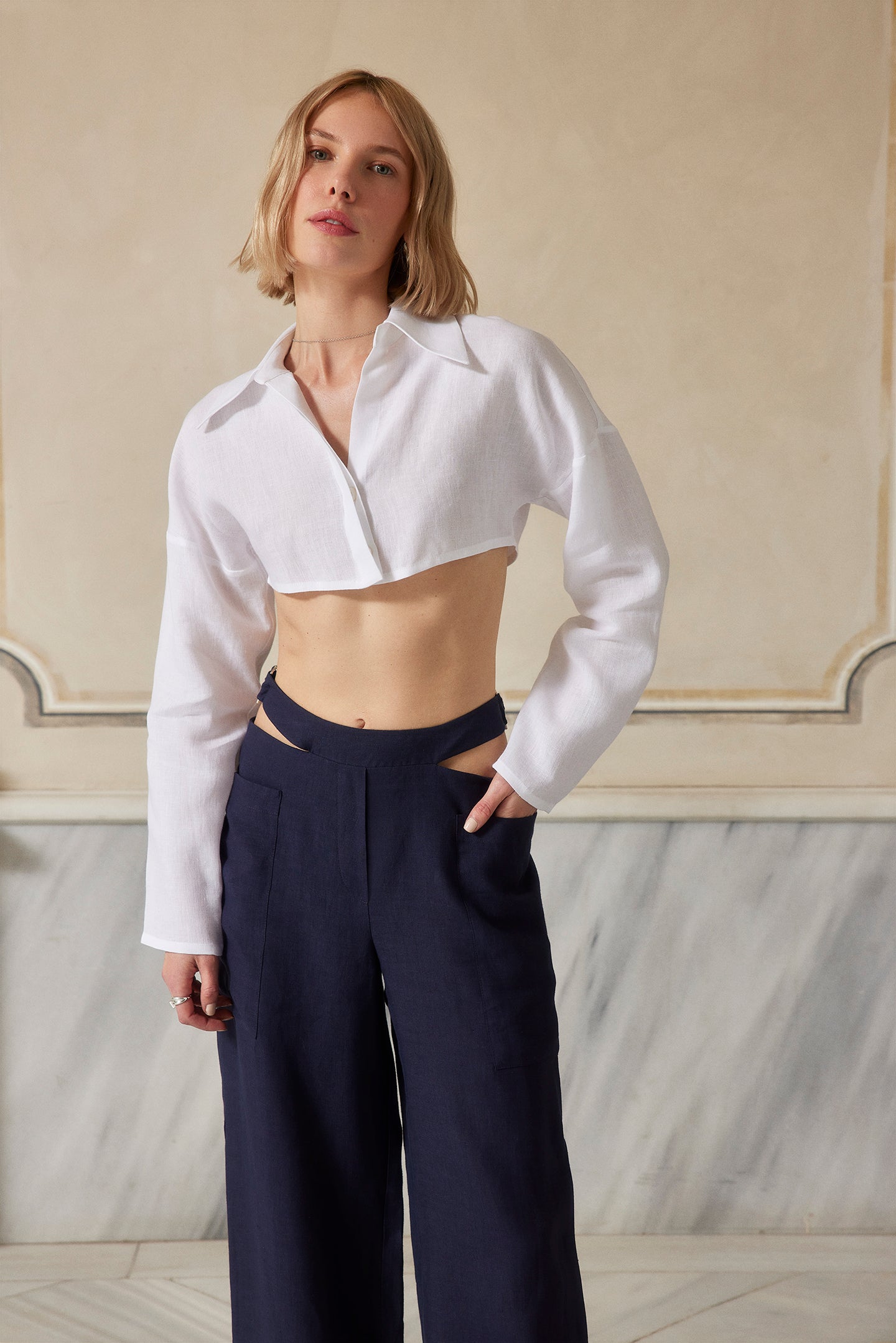 Extra cropped, button-down shirt.